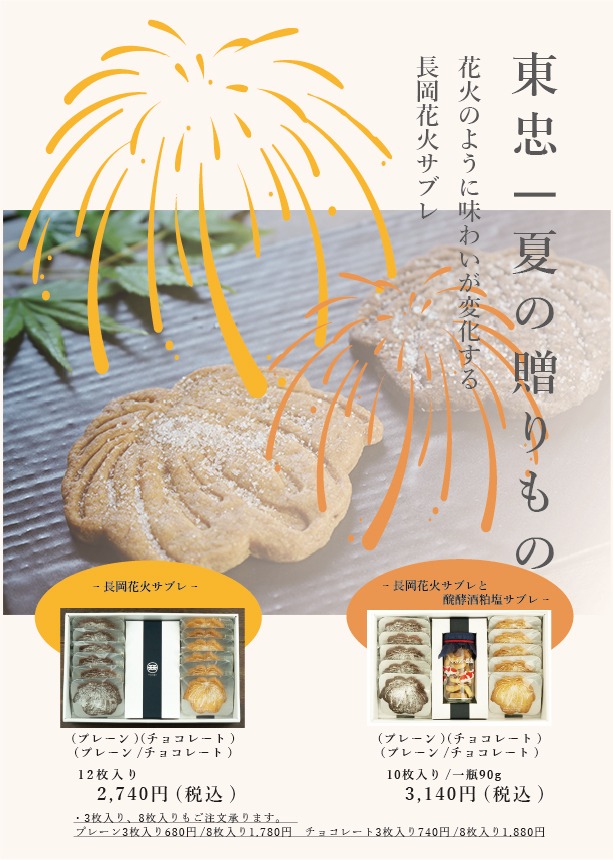 夏の風物詩にぴったりな長岡花火サブレの詰め合わせをご用意いたしました。