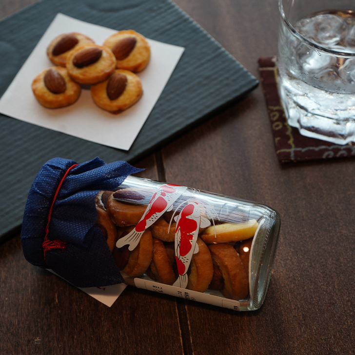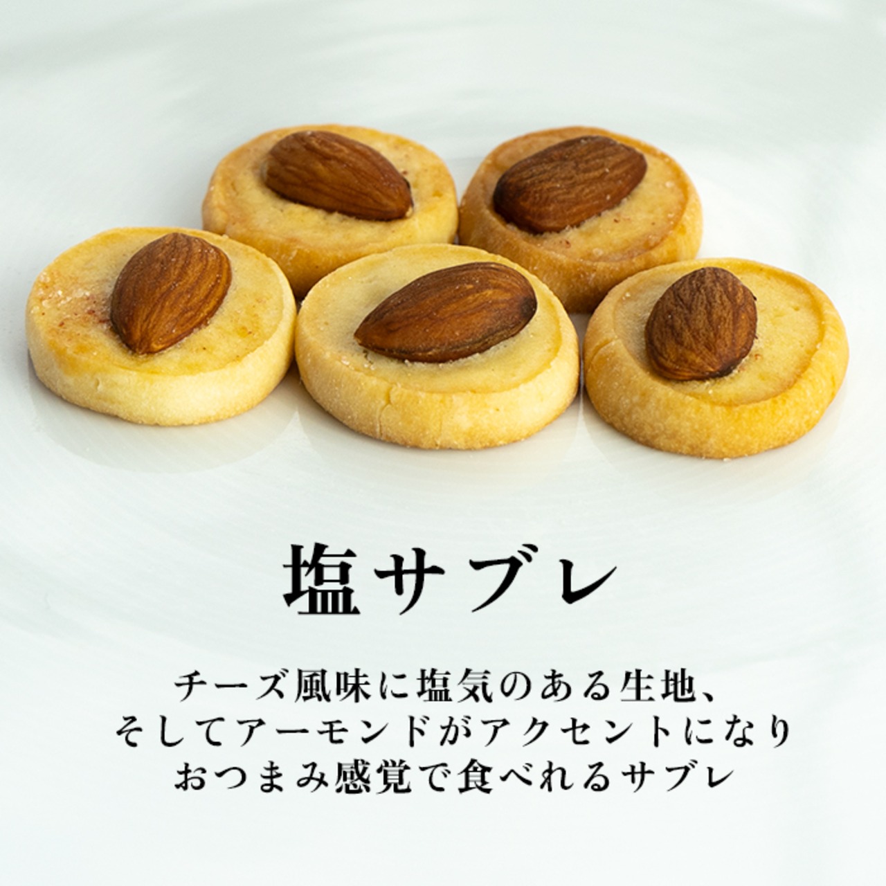 アーモンドがアクセントの塩気が効いたサブレです。お酒に合うよう仕上げていますので、ぜひお酒と一緒にお試しください。