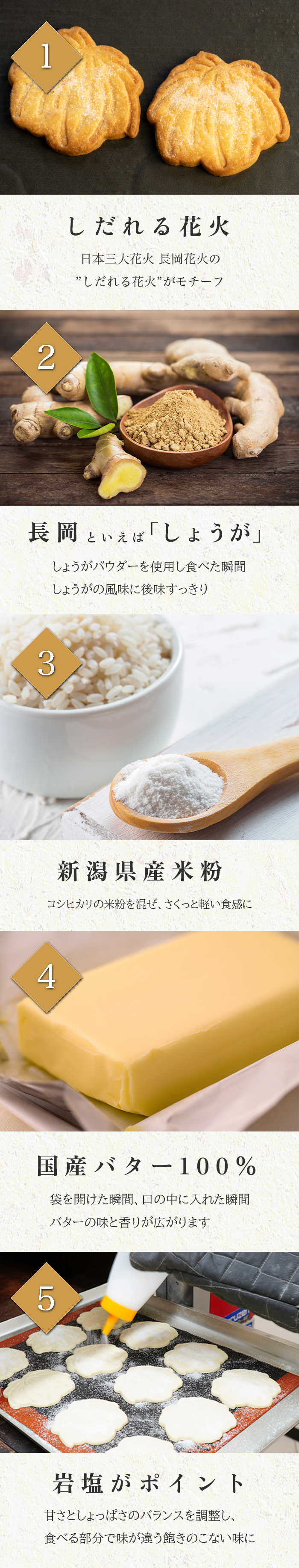 【原材料:発酵バター(国内製造)、小麦粉、砂糖、新潟県産米粉、卵白、しょうが、岩塩 (一部に卵・小麦・乳成分を含む)】