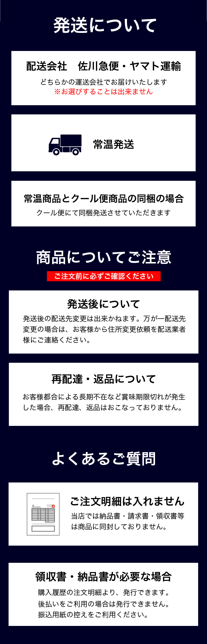 送料・配送方法について
